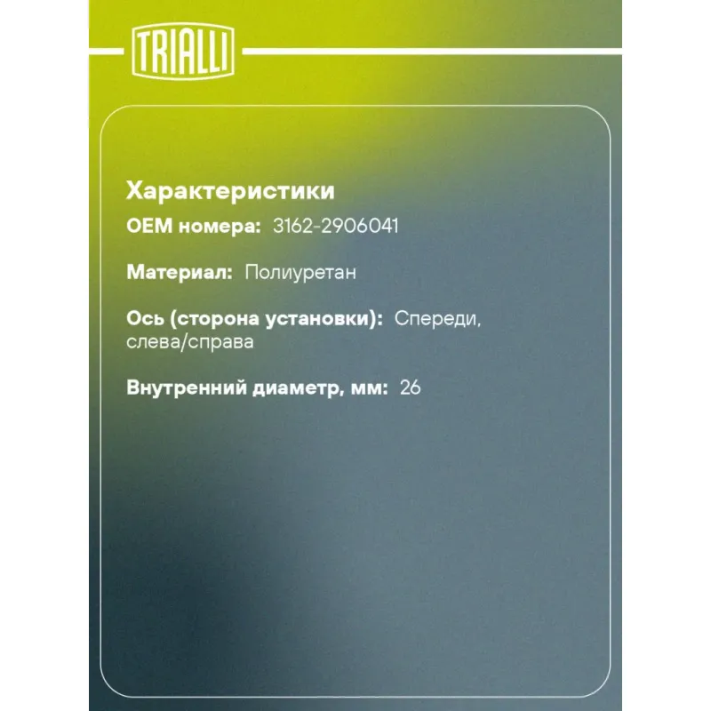 | Количество на автомобиль | 1 |