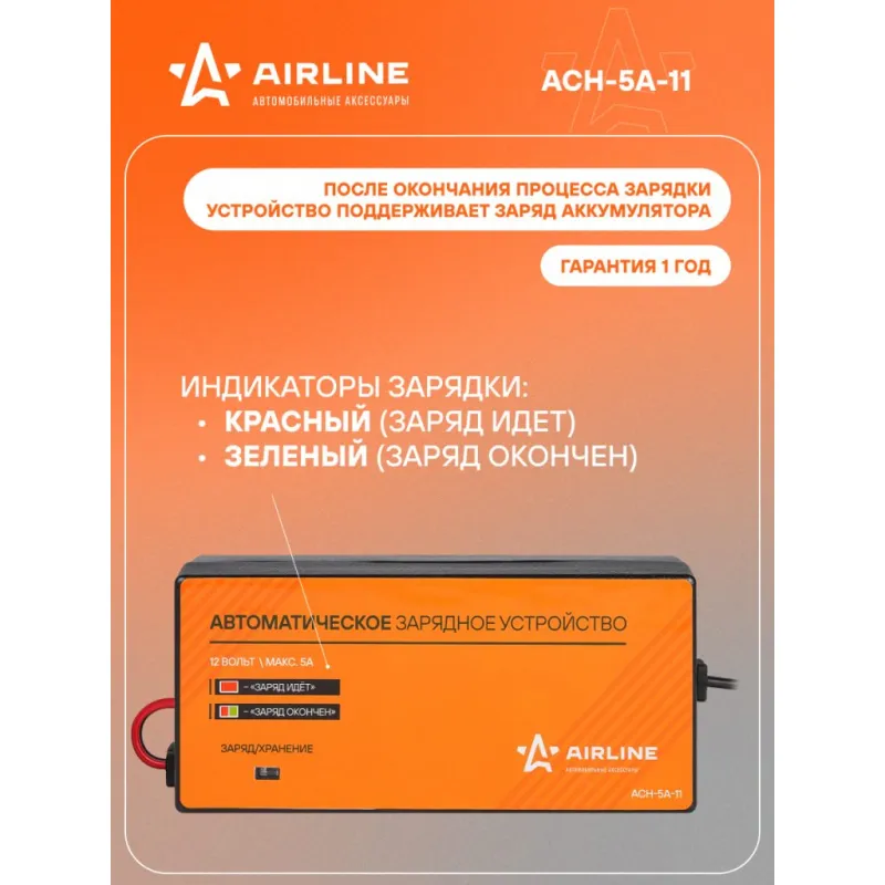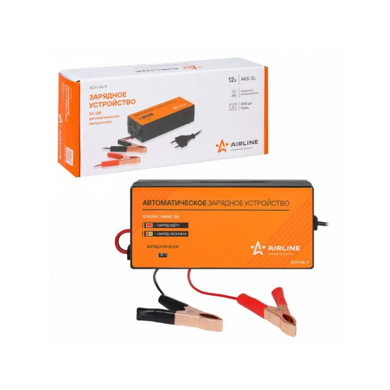 Зарядное устройство 5А 12В импульсное, автоматическое (диодный индикатор) Описание: Автоматическое импульсное зарядное устройство (ЗУ) предназначено для зарядки свинцово-кислотных аккумуляторных батарей всех типов (с жидким электролитом, AGM, обслуживаемых/необслуживаемых) с номинальным напряжением 12V, кроме гелевых (GEL). Позволяет заряжать АКБ емкостью до 90 Ач. Зарядка происходит в автоматическом режиме с возможностью ручной регулировки зарядного тока. Зарядное устройство обладает индикатором (красный-зарядка, зеленый - окончание зарядки), на передней панели расположен регулятор зарядного тока. После окончания зарядки устройство поддерживает заряд АКБ длительное время. Зарядное устройство для аккумулятора увеличивает срок службы АКБ. ЗУ может быть использовано для зарядки АКБ не только автомобиля, но и мотоцикла, квадроцикла, лодки, снегохода. В комплекте вы найдете подробную инструкцию по эксплуатации и гарантийный талон. Зарядное устройство для АКБ должно быть в машине у каждого автомобилиста, приобретайте его в подарок и для собственного пользования. Характеристики: Артикул: ACH-5A-11 Максимальная потребляемая мощность, Вт: 60 Диапазон рабочих температур, °C: -30 - +40 Максимальная емкость заряжаемой АКБ, Ач: 90 Максимальное значение зарядного тока, А: 5 Напряжение окончания заряда, В: 14.7 Напряжение питания ± 5%, В: 220 Частота сети, Гц: 50 Встроенный вентилятор: нет Комплектация: Инструкция - 1 шт Коробка - 1 шт Зарядное устройство - 1 шт Гарантия: от 1 года.