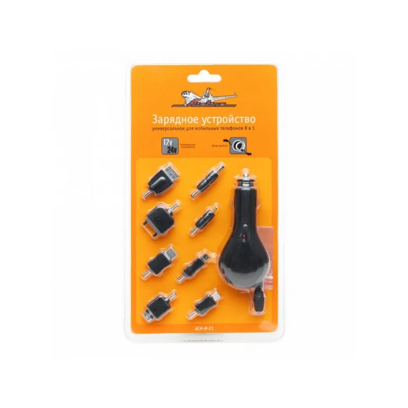 Зарядное устройство для мобильных устройств 8 в 1 Описание: Набор из адаптеров и переходников для зарядки различных гаджетов. Характеристики: Артикул: ACH-M-01 Комплектация: Адаптер в прикуриватель - 1 шт Переходник - 8 шт Гарантия: от 1 года.