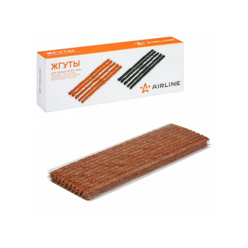Жгуты для ремонта б/к шин, 3.5*200мм, 30 шт, коричневые, ПВХ подложка, в коробке Описание: Жгуты для ремонта б/к шин 3,5*200 мм ATRS216 от бренда AIRLINE из бутилкаучука используются для заделывания проколов в шинах авто- и мототехники. Состав - Бутилкаучук, нейлон. Благодаря армированию нейлоновым кордом удалось добиться лучших показателей по долговечности и износостойкости. Ремонтный комплект должен быть в наборе инструментов для автомобиля, ведь он поможет произвести экстренный ремонт бескамерных шин. Жгут для ремонта бескамерных шин поможет самостоятельно устранить повреждения без обращения в автосервис. Набор жгутов ремонтный автомобильный является бюджетным вариантом оказания ремонтных услуг с базовым комплектом необходимых инструментов. Профессиональный ремкомплект для б/к шин позволяет лучше заделать микротрещины. Пару минут ожидания высыхания заплатки и машина готова, можно ехать! Набор для ремонта бескамерных шин является незаменимым помощником в экстренных ситуациях и подходит для ремонта шин различных видов транспортных средств (автомобилей, велосипедов, мотоциклов и других шин). Аксессуар в машину пригодится каждому автомобилисту, удобно хранить в машине, в гараже. Характеристики: Артикул: ATRS216 Длина жгута, мм: 200 Диаметр жгута, мм: 3,5 Комплектация: Жгуты - 30 шт Коробка - 1 шт Гарантия: от 1 года.