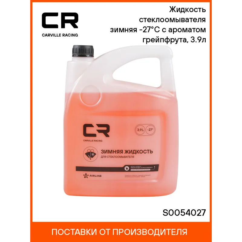 Жидкость стеклоомывателя зимняя -27°С с ароматом грейпфрута, 3.9л Описание: Эффективная зимняя жидкость стеклоомывателя для использования при температуре окружающей среды до минус 27 °С. Предназначена для очистки ветровых стекол и фар автомобиля от дорожной грязи, реагентов, масляной пленки, снега и льда. Не оставляет разводов и защищает от обледенения. Комбинация эффективных анионных, неионогенных поверхностно-активных веществ и функциональных добавок значительно снижает абразивное воздействие дорожной грязи на поверхность ветрового стекла и щеток стеклоочистителя. Не допускает появления микротрещин и помутнения на поверхностях фар из поликарбонатного стекла. Безопасна для лакокрасочного покрытия, резиновых и пластиковых элементов автомобиля. Характеристики: Артикул: S0054027 Состав: Вода деминерализованная, изопропиловый спирт >30%, этиленгликоль