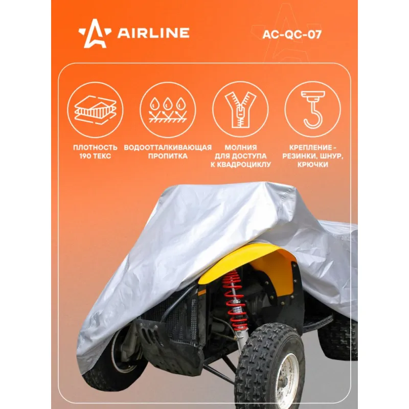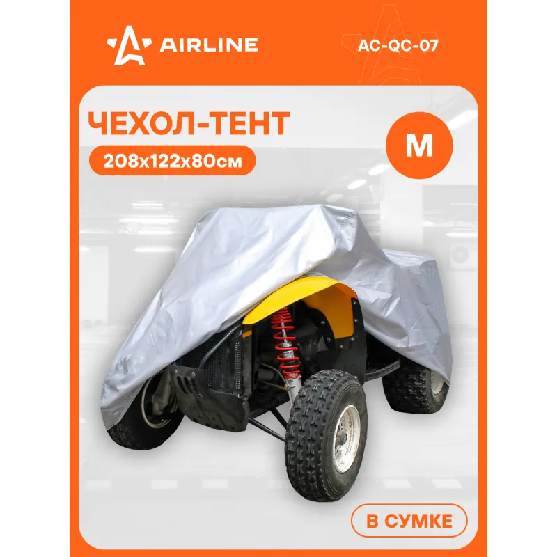 Чехол-тент на квадроцикл защитный, размер М (208*122*80см), цвет серый, универсальный Описание: Защитный чехол-тент от компании AIRLINE - универсальный автоаксессуар с водонепроницаемым покрытием специально разработанный для квадроциклов надежно защитит квадроцикл от вредного воздействия окружающей среды и защитит от коррозии и выцветания краски. Чехол-тент изготовлен из полиэстера, высокие показатели прочности (190T) с водоотталкивающей пропиткой. Среди преимуществ чехла-тента многочисленные защитные свойства, которые помогают сохранить внешний вид транспортного средства и уберечь его от повреждений. Преимущества: -сумка-чехол для хранения; -легкая установка; -защита от птиц; -защищает от снега и наледи; -защищает лакокрасочное покрытие от пыли и грязи, ветра и тополиных почек; -защищает лакокрасочное покрытие от дождя и града; -скрывает от посторонних взглядов; Будет хорошим приобретением в подарок мужчине, мужу, брату, парню, другу и каждому владельцу квадроцикла, так как его можно использовать во время гаражного хранения, на парковке на улице у дома или на даче на стоянке. Характеристики: Артикул: AC-QC-07 Ширина, мм: 1220 Длина, мм: 2080 Высота, мм: 800 Цвет: серый водоотталкивающая пропитка: да Плотность материала, текс: 190 Тип крепление: резинки, шнур, крючки Светоотражательные элементы: спереди, сзади Доступ в атомобиль: молния Светоотражательные элименты: нет Комплектация: Чехол-тент - 1 шт Коробка - 1 шт Сумка для чехла - 1 шт Гарантия: от 1 года.