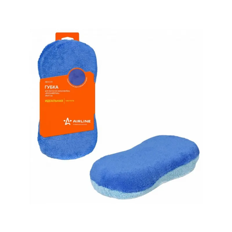 Губка для мытья из микрофибры "Восьмерка" (24*11 см) Описание: Губка в форме цифры восемь изготовлена из микрофибры и предназначена для влажной уборки поверхностей в салоне автомобиля или дома. Нижняя часть губки окрашена в ярко-синий цвет, а верхняя имеет нежно-голубой оттенок. Губка активно впитывает жидкость, а также не оставляет разводов на протираемой поверхности. Характеристики: Артикул: AB-K-01 Длина, см: 24 Ширина, см: 11 Высота, см: 5 Комплектация: Губка для мытья из микрофибры "Восьмерка" в картонном рукаве - 1 шт Гарантия: от 1 года.