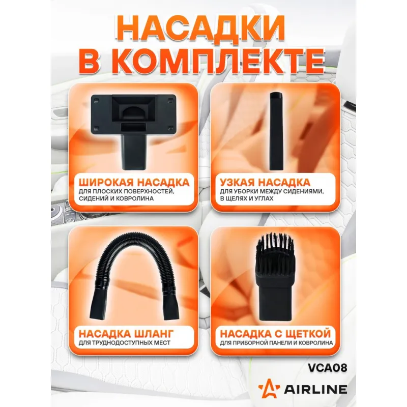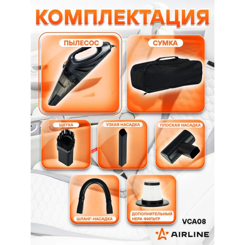 Пылесос BURAN 6800PA в сумке (120W, 0.5л) Описание: Пылесос оснащен мощным двигателем 120Вт с максимальным вакуумным давлением 6 500 Па- этого хватит чтобы справится даже с крупным мусором: листья, камни, монеты. Неоспоримым преимуществом пылесоса является сменный HEPA фильтр, который задерживают в пылесборнике даже мельчайшую пыль размером до 0,3 микрон. Корпус пылесоса выполнен из прочного ABS-пластика, что особенно важно в условиях интенсивной эксплуатации. Питание пылесоса происходит от бортовой электросети 12В через прикуриватель. Для удобства хранения и эксплуатации, пылесос комплектуется отсоединяемым кабелем питания длиной 5 метров. Прозрачный пылесборник поможет вам эффективнее контролировать наполняемость отсека, не допуская падения мощности всасывания и высыпания мусора. Пылесос комплектуются 4 насадками, щеточкой для чистки в труднодоступных местах, дополнительным сменным фильтром.Идеальный баланс мощности и цены. Характеристики: Артикул: VCA08 Мощность, Вт: 120 Максимальный ток, А: 10 Длина кабеля питания, м: 5 Максимальное вакуумное давление, Па: 6800 Напряжение питания, В: 12 Объем пылесборника, мл: 500 Тип фильтра: НЕРА фильтр (задерживает частицы до 0.3 мк) Комплектация: Инструкция - 1 шт Насадка с узким носиком - 1 шт Пылесос автомобильный - 1 шт Насадка-щетка - 1 шт Насадка с широким носиком - 1 шт Щетка щелевая - 1 шт Гибкий шланг - 1 шт Сумка - 1 шт Коробка - 1 шт Гарантия: от 1 года.
