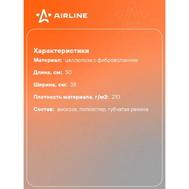 Салфетка для мойки авто влаговпитывающая (50*38см) Описание: Салфетка 1 шт для уборки авто влаговпитывающая универсальная AIRLINE ABDN003. Салфетка размером 50*38 см поможет основательно упростить процесс уборки и значительно сократит время, затраченное на дезинфекцию поверхностей и панелей в доме или автомобиле. Салфетка для мойки авто влаговпитывающая AIRLINE предназначена для ручной мойки автомобиля и стекол. Может использоваться в сухом и влажном виде. Мягкая пористая текстура, высокая влаговпитываемость, не оставляет следов и царапин. Безопасна для любых поверхностей: лакокрасочные покрытия, стекла, пластик, кожа и пр. Эффективно очищает от пятен и других загрязнений. - Состав: вискоза, полиэстер, губчатая резина ; - Не повреждает лакокрасочное покрытие, подходит для полировки кузова, для стекол и зеркал; - Профессиональное удаление грязи, пятен и пыли; - Не оставляет царапин; - Не теряет свойств после стирки; - Быстро сохнет после стирки; - Высокое влагопоглощение; - Удаляет микробы и грибы; Салфетка автомобильная - отличный подарочный вариант в набор автомобилиста: мужчине и женщине, автолюбителю, папе, отцу, мужу, парню и другу, на любой праздник, Новый год и просто так, незаменимая вещь для дома, для ухода за автомобилем автосервиса, для профессионального использования. Товар официального производителя AIRLINE. В нашем магазине, вы найдете широкий ассортимент высококачественных автотоваров для автомобиля, автозапчастей, аксессуары для машины, аксессуары для тюнинга авто, отвертки для авто, инструменты для ремонта и строительства, незаменимый слесарный инструмент для авто и машины, набор инструментов, набор прямых и крестовых отверток. Характеристики: Артикул: ABDN003 Материал: целлюлоза с фиброволокном Длина, см: 50 Ширина, см: 38 Плотность материала, г/м2: 210 Комплектация: Салфетка в ПЭ пакете - 1 шт Гарантия: от 1 года.