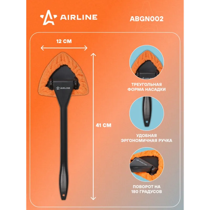 Щетка для мытья лобового стекла из микрофибры треугольная (14*12 см) Описание: Щетка AIRLINE ABGN002 выполнена из пластика с насадкой из мягкой микрофибры. Идеально подходит для мытья лобового стекла за счет подвижности насадки. Отлично справляется с запотеванием стекла. Щеткой легко доставать до любых труднодоступных участков, включая высокий багажник. Благодаря этому, вы сможете без усилий очистить лобовое стекло, крышу, капот, борта грузового автотранспорта. Автощетка оснащена микрофиброй, которая обеспечивает очистку без появления царапин на лакокрасочных поверхностях. Длинный и мягкий ворс на насадке хорошо впитывает воду и отлично собирает пыль с кузова на сухую. Автощетку удобно хранить в багажнике, в кладовке, в машине и легко найдет применение в быту. Автомобильная телескопическая щетка - это самый важный аксессуар который должен быть у каждого автолюбителя. Щетка AIRLINE для автомобиля повысит уровень комфорта во время путешествий и ежедневных поездок, поэтому станет нужным полезным подарком автомобилисту, мужу, папе, бату, дяде, жене, маме, сестре, тете, коллеге. Этот аксессуар для машины - это универсальный подарок на любой праздник, новый год, 23 февраля, 8 марта. В линейке AIRLINE, вы найдете широкий ассортимент высококачественных автотоваров и средств по уходу за вашим автомобилем щетки для окон, водосгоны, скребки, швабры. Мы гарантируем качество и надежность наших товаров. Характеристики: Артикул: ABGN002 Материал: микрофибра Длина в разложенном виде, см: 41 Ширина щетки, см: 14 Длина щетки, см: 12 Комплектация: Щетка из микрофибры в двойном блистере - 1 шт Гарантия: от 1 года.