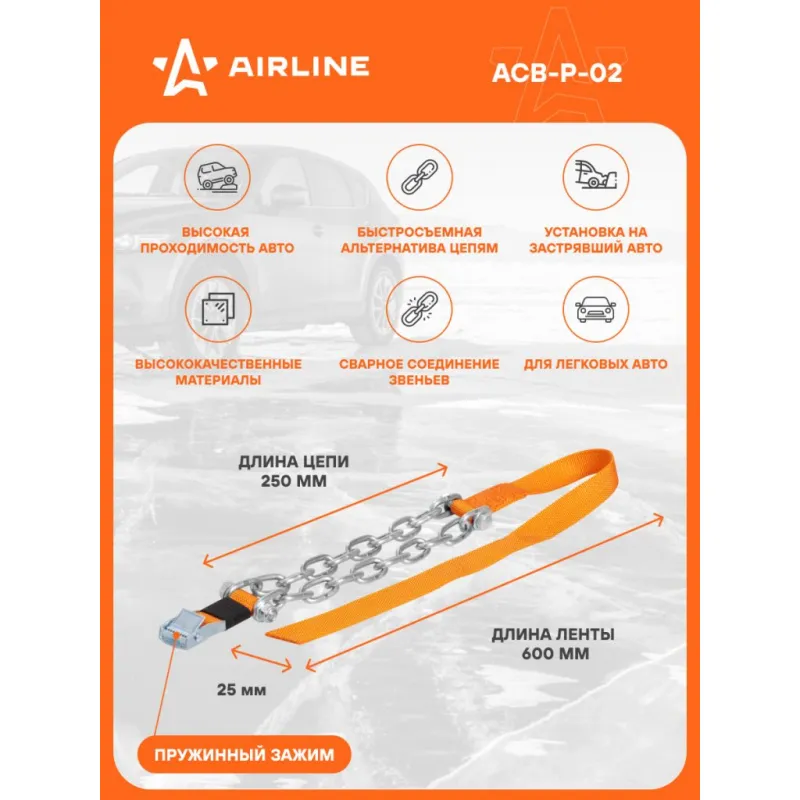 Цепи (браслеты) противоскольжения для лег.авто (колёса 165-205 мм), к-т 4 шт. Описание: Браслеты противоскольжения на колеса - надежное приспособление, которое обеспечит безопасность вождения вашего автомобиля offroad, во время выездов на природу, на охоту или рыбалку, поездок в деревню и на дачу. Благодаря браслетам противоскольжения, Вы сможете проехать по легкому бездорожью, преодолеть скользкий подъем, глубокий снег или выбраться из колеи! Не имеет значения, какой привод на вашей машине: передний, задний или полный. Браслеты надежно крепятся к колесам и дискам шин при помощи замка (пружинный зажим) и ваше авто справится с любыми дорожными условиями. Специальное антипробуксовочное покрытие и усиленная железная конструкция обеспечивают надежное сцепление с дорогой и предотвращают пробуксовку. Браслеты противоскольжения выполнены из оцинкованной стали и металла, что делает их прочными и устойчивыми к износу. Толщина звена в 5 мм обеспечивает достаточную прочность и стабильность на дороге. Характеристики: Артикул: ACB-P-02 Вид замка: пружинный, самозажимной Материал замка: силумин Длина ленты, мм: 600 Ширина ленты, мм: 25 Длина цепи, мм: 250 Толщина звена, мм: 5 Покрытие стали: оцинкованная Длина звена, мм: 36 Соединение цепи: сварное Ширина шины, мм: 165-205 Комплектация: Браслеты - 4 шт Крючок для монтажа - 1 шт Инструкция - 1 шт Мешок(ткань) с ручкой - 1 шт Гарантия: от 1 года.