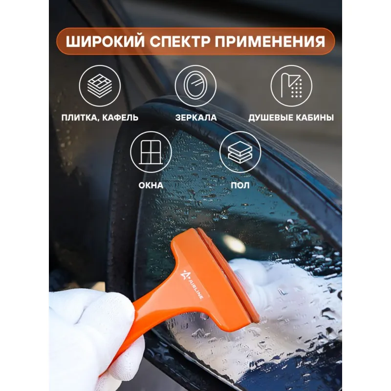 Водосгон силиконовый MINI (6см) Описание: Многофункциональный карманный водосгон из высококачественного износостойкого силикона легко очистит автомобильные стекла, окна и зеркала, а также ламинат, плитку и другие гладкие поверхности, включая душевые стекла и подойдет как для уборки на бытовом, так и на профессиональном уровне. Водосгон данной модели бренда AIRLINE ABMN013 отличается компактными размерами и привлекательным дизайном. Ширина рабочей поверхности изделия составляет 60 мм, что позволяет успешно использовать водосгон в бытовых целях и без затруднений хранить в салоне автомобиля. Водосгон отличается привлекательным дизайном с фирменными серо-оранжевыми цветами AIRLINE. Эргономичная легкая ручка стеклоочистителя делает чистку быстрой, легкой и удобной. Силиконовый скребок устойчив к плесени, хорошо соприкасается с очищаемой поверхностью и быстро и эффективно стягивает воду и мыльную пленку. Износостойкая резина гарантирует длительный срок эксплуатации скребка. Водосгон в автомобиль повысит уровень комфорта во время путешествий и ежедневных поездок, а также найдет применение в быту, поэтому станет нужным полезным подарком автомобилисту, мужу, папе, бату, дяде, жене, маме, сестре, тете, коллеге на 23 февраля, 8 марта, новый год. Характеристики: Артикул: ABMN013 Материал лезвия: силикон Длина лезвия, мм: 60 Комплектация: Водосгон с картонным ярлыком - 1 шт Гарантия: от 1 года.