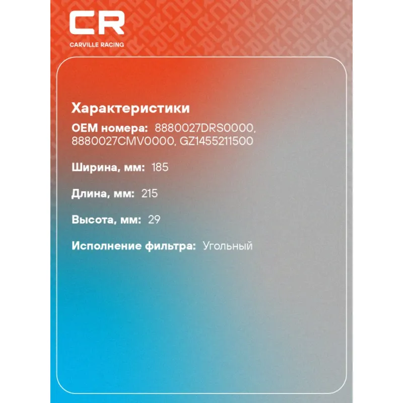 Фильтр салонный угольный для автомобилей GAC GS8 II (21-) CRVC55289 Carville Racing