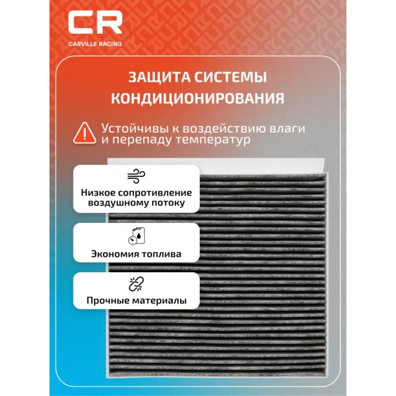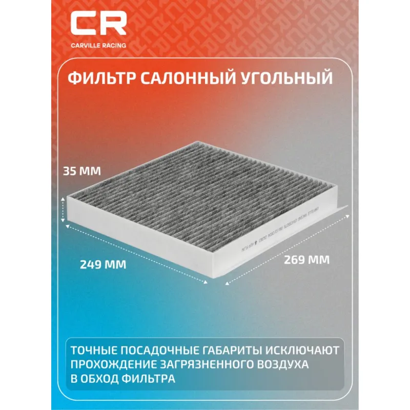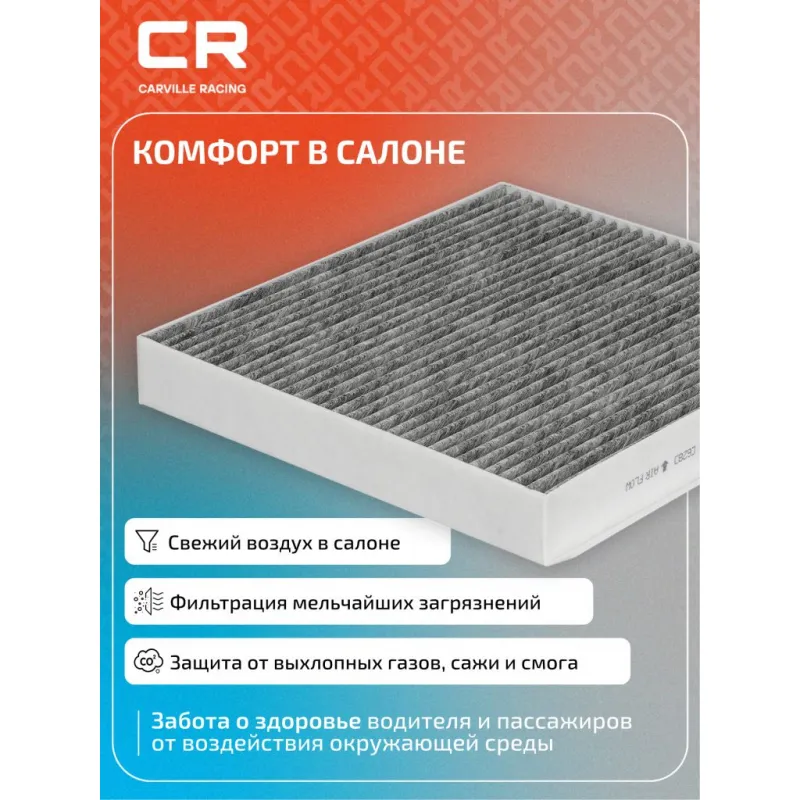 Фильтр салонный угольный для автомобилей LiXiang L9 (22-)/L8 (22-) Описание: Салонные фильтры CRVC55276 бренда CARVILLE RACING обеспечивают подачу очищенного воздуха в салон автомобиля, эффективно защищают водителя и пассажиров от воздействия пыли, сажи, смога, пыльцы и других дорожных загрязнений. Угольные фильтры обеспечивают лучшую фильтрацию выхлопных газов и неприятных запахов. Подбор по VIN-номеру вашего автомобиля - через кнопку 'Задать вопрос'. Специалист проверит применяемость и ответит вам. Применяемость LIXIANG L9, L8.. Производство фильтров осуществляется на высокотехнологичных автоматизированных линиях, сертифицированных стандартом IATF 16949:2016. Вся продукция испытывается в испытательных лабораториях, аккредитованных стандартами по ISO 17025: 2017 и CNAS-CL01. Большое количество складок и большая площадь фильтрации обеспечивают фильтрацию мельчайших загрязнений и большую грязеемкость для длительного срока службы. Устойчивы к воздействию влаги и перепаду температур, предотвращают запотевание окон. Точные посадочные габариты исключают прохождение воздуха в обход фильтра. Характеристики: Артикул: CRVC55276 OEM номера: H141553142 Ширина, мм: 249 Длина, мм: 269 Высота, мм: 35 Исполнение фильтра: Фильтр-патрон Количество на автомобиль: 1 Подходит для авто: LiXiang L8 (22-), L9 (22-) Для проверки применяемости отправьте VIN автомобиля через вкладку "Есть вопросы о товаре?" Комплектация: Фильтр салонный угольный - 1 шт Гарантия: от 1 года.