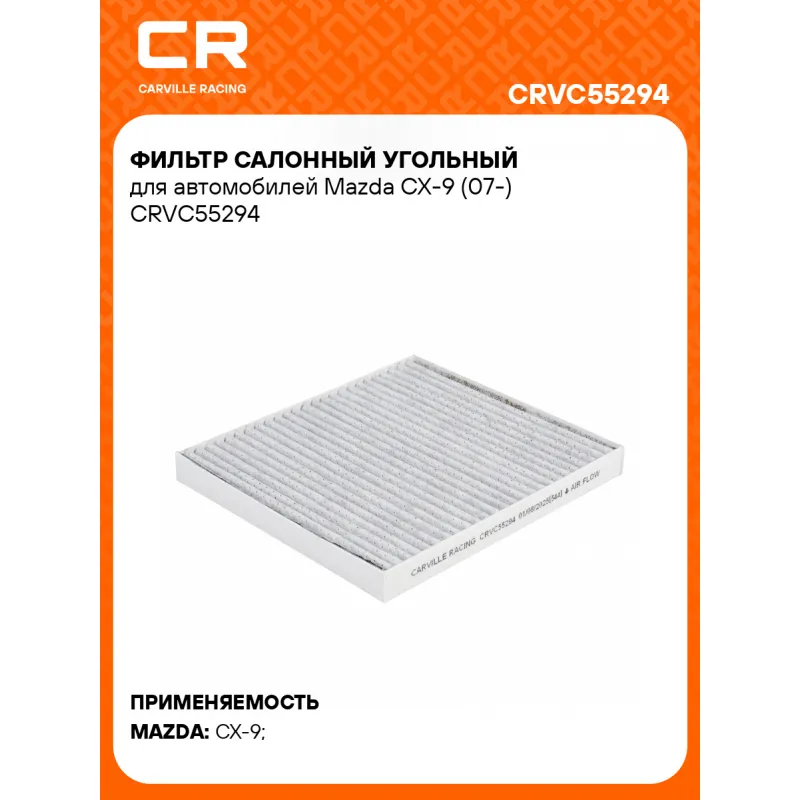 Фильтр салонный угольный для автомобилей Mazda CX-9 (07-) Характеристики: Артикул: CRVC55294 OEM номера: TD8661P11 Ширина, мм: 175 Длина, мм: 199 Высота, мм: 19 Исполнение фильтра: Фильтр-патрон Количество на автомобиль: 1 Комплектация: Фильтр салонный угольный - 1 шт Гарантия: от 1 года.