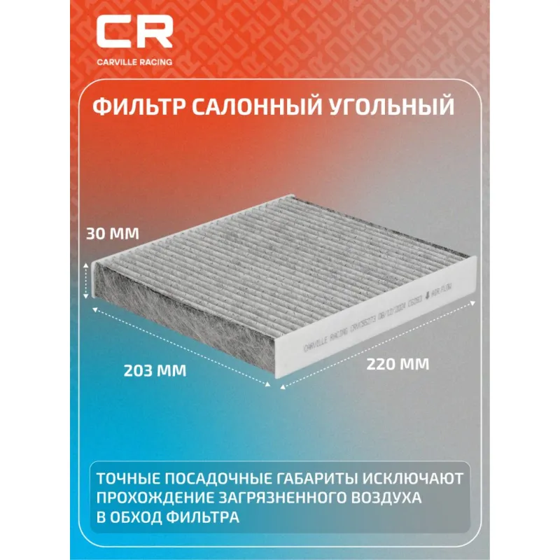 Фильтр салонный угольный для автомобилей Tank 500 (21-)/400 (25-)/Haval H9 II (24-)/H5 III (24-)/Poer KingKong (23-) Описание: Салонные фильтры CRVC55273 бренда CARVILLE RACING обеспечивают подачу очищенного воздуха в салон автомобиля, эффективно защищают водителя и пассажиров от воздействия пыли, сажи, смога, пыльцы и других дорожных загрязнений. Угольные фильтры обеспечивают лучшую фильтрацию выхлопных газов и неприятных запахов. Подбор по VIN-номеру вашего автомобиля - через кнопку 'Задать вопрос'. Специалист проверит применяемость и ответит вам. Применяемость HAVAL H9, TANK 500, 400.. Производство фильтров осуществляется на высокотехнологичных автоматизированных линиях, сертифицированных стандартом IATF 16949:2016. Вся продукция испытывается в испытательных лабораториях, аккредитованных стандартами по ISO 17025: 2017 и CNAS-CL01. Большое количество складок и большая площадь фильтрации обеспечивают фильтрацию мельчайших загрязнений и большую грязеемкость для длительного срока службы. Устойчивы к воздействию влаги и перепаду температур, предотвращают запотевание окон. Точные посадочные габариты исключают прохождение воздуха в обход фильтра. Характеристики: Артикул: CRVC55273 OEM номера: 8104430XKV3AA, 8104410XKV3AA Ширина, мм: 203 Длина, мм: 220 Высота, мм: 30 Исполнение фильтра: Фильтр-патрон Количество на автомобиль: 1 Подходит для авто: TANK 500 (21-) Для проверки применяемости отправьте VIN автомобиля через вкладку "Есть вопросы о товаре?" Комплектация: Фильтр салонный угольный - 1 шт Гарантия: от 1 года.