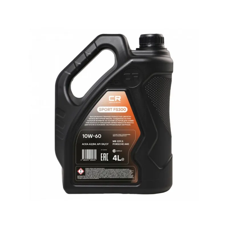 Масло моторное CARVILLE RACING SPORT FS300 10W-60 4L Описание: Полностью синтетическое моторное масло 10W-60 для автомобилей от бренда CARVILLE RACING L1D00404, созданное по уникальной формуле на основе эстеров для снижения износа и повышения эффективности работы двигателя в условиях экстремальных нагрузок. Масло моторное подходит для бензиновых и дизельных двигателей, включая двигатели с турбонаддувом, где производитель рекомендует моторные масла спецификации АСЕА A3/B4, API SN/CF, класса вязкости SAE 10W-60. Не подходит для использования в дизельных двигателях, оснащенных сажевым фильтром (DPF). ОСОБЕННОСТИ И ПРЕИМУЩЕСТВА МАСЛА CARVILLE RACING: Обеспечивает: • Максимальную защиту от износа; • Снижение потерь на трение при любых скоростях и условиях работы двигателя; • Улучшенные характеристики при холодном пуске и прокачиваемость масла при низких температурах; • Сверхпрочную масляную пленку; • Низкое пенообразование; СПЕЦИФИКАЦИИ: • ACEA A3/B4; • API SN/CF; Соответствие требованиям: • Porsche A40; • MB 229.3; Характеристики: Артикул: L1D00404 Гарантийный срок хранения: 5 лет Класс вязкости по SAE: 10W-60 Классификация по API: SN/CF Классификация по ACEA: A3/B4 Соответствие требованиям: MB 229.3; Porsche A40 Применение: Для всех типов бензиновых и дизельных двигателей, включая двигатели с турбонаддувом, где производитель рекомендует моторные масла спецификации АСЕА А3/B4, API SN/CF, класса вязкости SAE 10W-60. Объем, л: 4 Описание: Полностью синтетическое моторное масло на основе эстеров Серия: 10W-60 Комплектация: Масло моторное - 1 шт Гарантия: от 1 года.