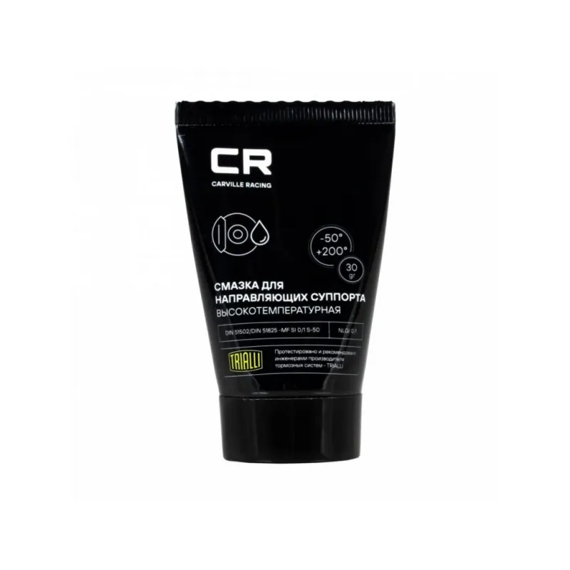 Смазка для направляющих суппорта высокотемпературная, туба, 30 г Описание: Высокотемпературная пластичная смазка Carville Racing для направляющих тормозного суппорта. Обладает высокими водоотталкивающими и защитно-консервационными свойствами. Препятствует закисанию направляющих суппорта и обеспечивает равномерный износ тормозных колодок. Полностью совместима с резиновыми пыльниками. Характеристики: Артикул: G5150252 OEM номера: 0888780609, 1948600, A0019899451, A0019894751, 1161447, 9163321, 0019899451, G052150A2, B000100, 032960041, 1161448, 1161687, 1161688, 1161246, 1161247, 1161326, 282830, 000077XG3A, 1948003, 0888783010, 83192158851, 0888701206, 000041000, MZ101616EX Назначение: Для тормозной системы Свойства: Высокотемпературные Рабочий температурный диапазон: от -50°С до +200°С Классификация по DIN 51 502/ DIN 51825: MF SI 0/1 S-50 Классификация по NLGI: 0/1 Цвет: Белый Температура каплепадения: не ниже +205°С Область применения: Направляющие тормозного суппорта, пыльники направляющих. Нетто / Брутто: 30г / 39г Комплектация: Смазка - 1 уп Гарантия: от 1 года.