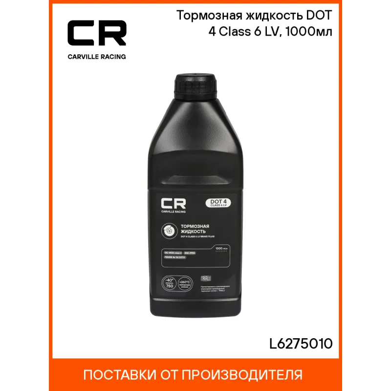 | Инструкция по применению | Тормозная жидкость Carville Racing DOT 4 предназначена для использования во всех гидравлических тормозных системах и приводах сцеплений, в которых рекомендовано применение жидкостей DOT 3 и DOT 4. Рекомендуемый срок замены – каждые 2 года либо 40000 км пробега. Необходимо соблюдать предписанные производителем транспортного средства интервалы замены тормозной жидкости. Необходимо соблюдать предписания производителя транспортного средства по спецификации тормозной жидкости. ВНИМАНИЕ! Тормозная жидкость агрессивна по отношению к лакам, краскам и коже рук. |