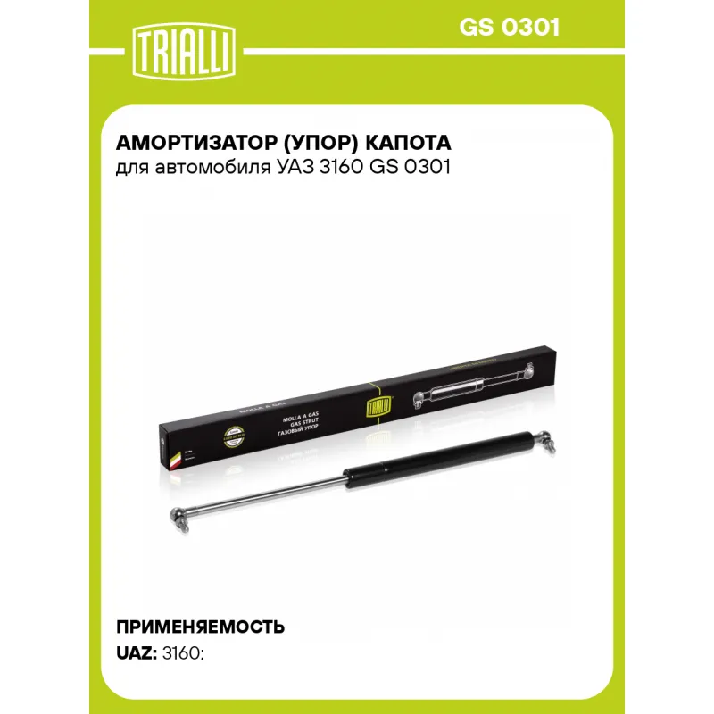 Амортизатор (упор) капота для автомобиля УАЗ 3160 Характеристики: Артикул: GS 0301 OEM номера: 3160-6308015, 3160-6308010, 121.8231010, 12100-8231010-00 Товарная линейка: BLACK Количество на автомобиль: 2 Гарантийный срок: 2 года / 60 000 км Длина в свободном состоянии: 450 Длина в сжатом состоянии: 275 Ход поршня: 175 Усилие в точке P3: 360 Подходит для авто: УАЗ 3160 (97-), 3160 (97-), 3160 (97-) Для проверки применяемости отправьте VIN автомобиля через вкладку "Есть вопросы о товаре?" Комплектация: Амортизатор (упор) капота - 1 шт Гарантия: от 1 года.