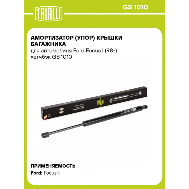 Амортизатор (упор) крышки багажника для автомобиля Ford Focus I (98-) хетчбэк Характеристики: Артикул: GS 1010 OEM номера: 3M51A406A10AB, XS41A406A10AF, 1313218, 1150277, 1229461 Товарная линейка: BLACK Количество на автомобиль: 2 Гарантийный срок: 2 года / 60 000 км Длина в свободном состоянии: 455 Длина в сжатом состоянии: 330... Читать полностью →