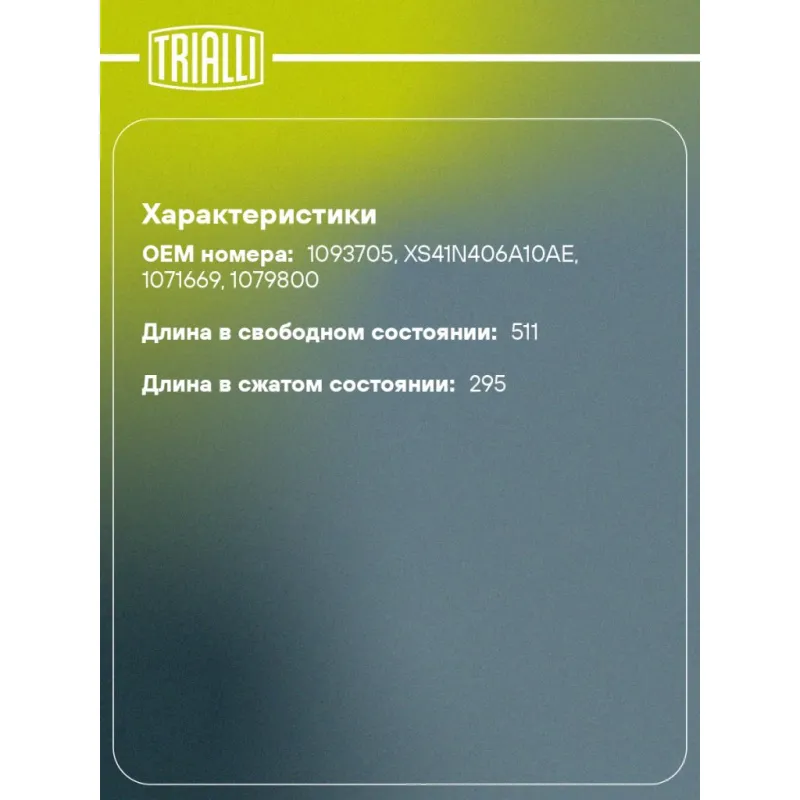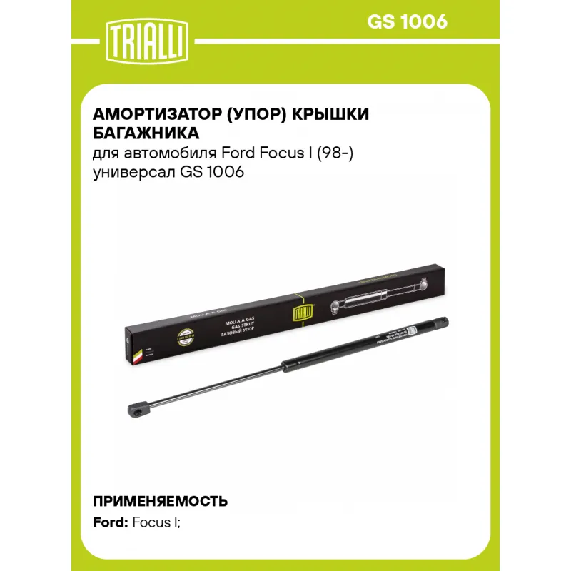 Амортизатор (упор) крышки багажника для автомобиля Ford Focus I (98-) универсал Характеристики: Артикул: GS 1006 OEM номера: 1093705, XS41N406A10AE, 1071669, 1079800 Товарная линейка: BLACK Количество на автомобиль: 2 Гарантийный срок: 2 года / 60 000 км Длина в свободном состоянии: 511 Длина в сжатом состоянии: 295 Ход поршня: ... Читать полностью →
