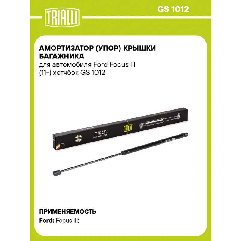 Амортизатор (упор) крышки багажника для автомобиля Ford Focus III (11-) хетчбэк Характеристики: Артикул: GS 1012 OEM номера: BM51A406A10AE, 1747492, BM51A406A10AD, 1718369, 1701829, 1708918 Товарная линейка: BLACK Количество на автомобиль: 2 Гарантийный срок: 2 года / 60 000 км Длина в свободном состоянии: 600 Длина в сжатом состоянии: 340 Ход поршня: 260 Усилие в точке P3: 385 Подходит для авто: Ford Focus III (11-), Focus III (11-) Для проверки применяемости отправьте VIN автомобиля через вкладку "Есть вопросы о товаре?" Комплектация: Амортизатор (упор) крышки багажника - 1 шт Гарантия: от 1 года.
