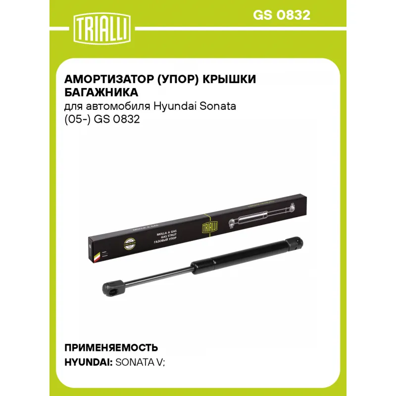 Амортизатор (упор) крышки багажника для автомобиля Hyundai Sonata (05-) Характеристики: Артикул: GS 0832 OEM номера: 81771-3K001, 81771-3K000 Товарная линейка: BLACK Количество на автомобиль: 2 Гарантийный срок: 2 года / 60 000 км Длина в свободном состоянии: 304 Длина в сжатом состоянии: 199 Ход поршня: 105 Усилие в точке P3: 5... Читать полностью →