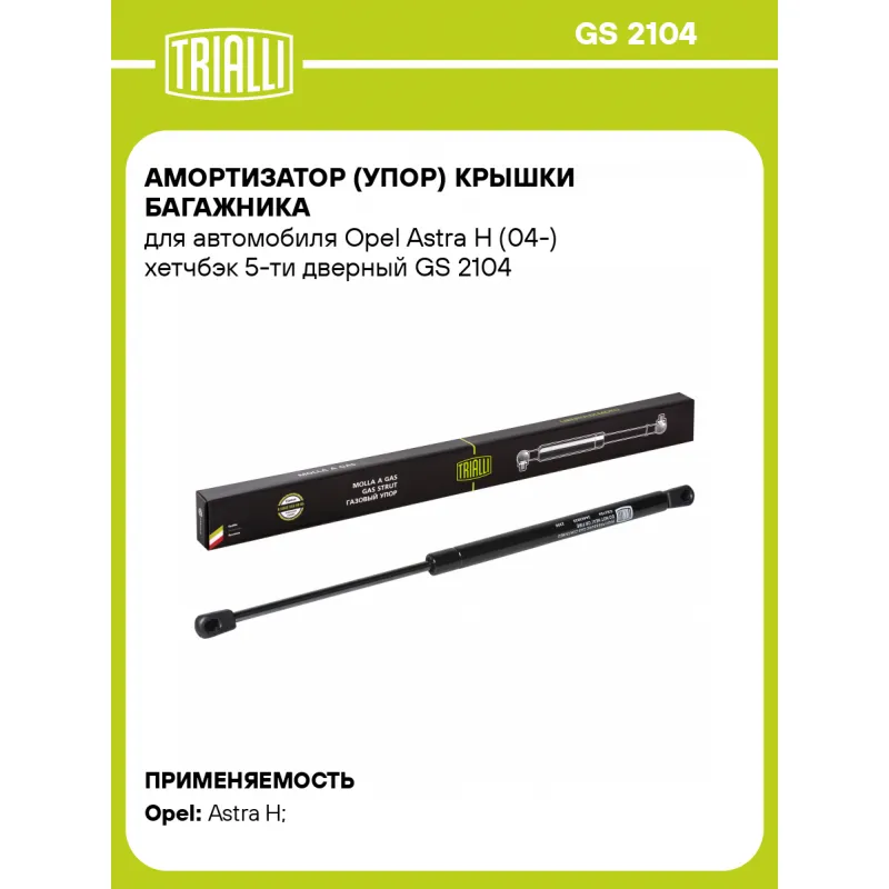 Амортизатор (упор) крышки багажника для автомобиля Opel Astra H (04-) хетчбэк 5-ти дверный Характеристики: Артикул: GS 2104 OEM номера: 132743, 24463829 Товарная линейка: BLACK Количество на автомобиль: 2 Гарантийный срок: 2 года / 60 000 км Длина в свободном состоянии: 425 Длина в сжатом состоянии: 260 Ход поршня: 165 Усилие в точке P3: 450 Подходит для авто: Opel Astra H (04-) Для проверки применяемости отправьте VIN автомобиля через вкладку "Есть вопросы о товаре?" Комплектация: Амортизатор (упор) крышки багажника - 1 шт Гарантия: от 1 года.