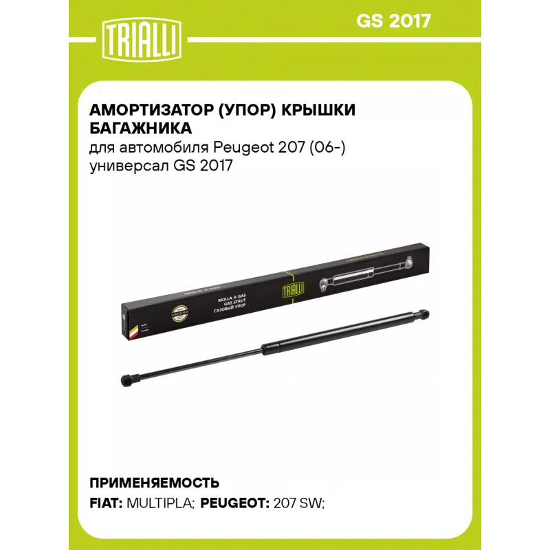 Амортизатор (упор) крышки багажника для автомобиля Peugeot 207 (06-) универсал Характеристики: Артикул: GS 2017 OEM номера: 8731Q0, 8731P9, 51025904 Товарная линейка: BLACK Количество на автомобиль: 2 Гарантийный срок: 2 года / 60 000 км Длина в свободном состоянии: 505 Длина в сжатом состоянии: 310 Ход поршня: 195 Усилие в точк... Читать полностью →