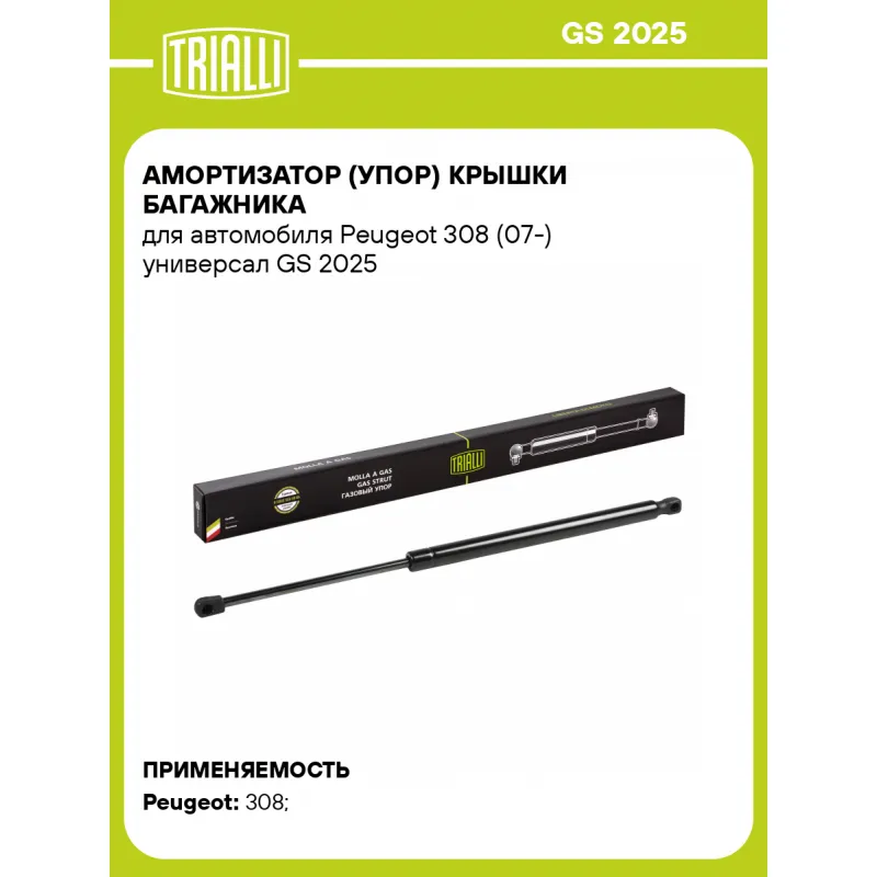 Амортизатор (упор) крышки багажника для автомобиля Peugeot 308 (07-) универсал GS 2025 TRIALLI