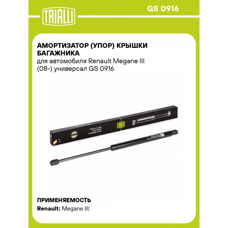 Амортизатор (упор) крышки багажника для автомобиля Renault Megane III (08-) универсал Характеристики: Артикул: GS 0916 OEM номера: 844300009R Товарная линейка: BLACK Количество на автомобиль: 2 Гарантийный срок: 2 года / 60 000 км Длина в свободном состоянии: 482 Длина в сжатом состоянии: 286 Ход поршня: 196 Усилие в точке P3: 705 Подходит для авто: Renault Megane III (08-), Megane III (08-) Для проверки применяемости отправьте VIN автомобиля через вкладку "Есть вопросы о товаре?" Комплектация: Амортизатор (упор) крышки багажника - 1 шт Гарантия: от 1 года.