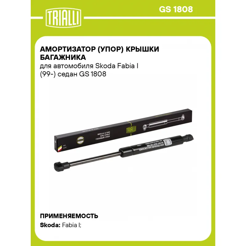 Амортизатор (упор) крышки багажника для автомобиля Skoda Fabia I (99-) седан Характеристики: Артикул: GS 1808 OEM номера: 6Y5827550A Товарная линейка: BLACK Количество на автомобиль: 2 Гарантийный срок: 2 года / 60 000 км Длина в свободном состоянии: 279 Длина в сжатом состоянии: 176 Ход поршня: 103 Усилие в точке P3: 490 Подходит для авто: Skoda Fabia I (99-), Fabia I (99-) Для проверки применяемости отправьте VIN автомобиля через вкладку "Есть вопросы о товаре?" Комплектация: Амортизатор (упор) крышки багажника - 1 шт Гарантия: от 1 года.