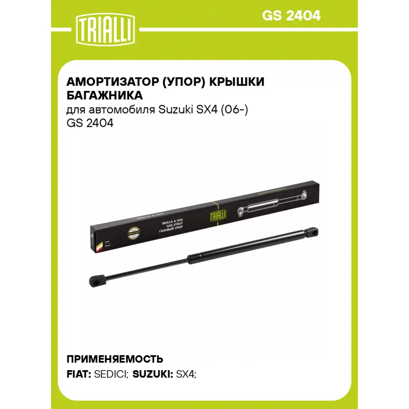 Амортизатор (упор) крышки багажника для автомобиля Suzuki SX4 (06-) Характеристики: Артикул: GS 2404 OEM номера: 81850-79J00, 81860-79J00 Товарная линейка: BLACK Количество на автомобиль: 2 Гарантийный срок: 2 года / 60 000 км Длина в свободном состоянии: 445 Длина в сжатом состоянии: 285 Ход поршня: 160 Усилие в точке P3: 420 Комплектация: Амортизатор (упор) крышки багажника - 1 шт Гарантия: от 1 года.