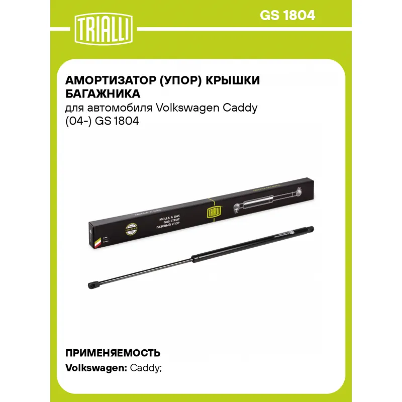Амортизатор (упор) крышки багажника для автомобиля Volkswagen Caddy (04-) Характеристики: Артикул: GS 1804 OEM номера: 2K0827550, 2K0827550A Товарная линейка: BLACK Количество на автомобиль: 2 Гарантийный срок: 2 года / 60 000 км Длина в свободном состоянии: 719 Длина в сжатом состоянии: 440 Ход поршня: 279 Усилие в точке P3: 870 Подходит для авто: Volkswagen Caddy (04-), Caddy (04-), Caddy (04-) Для проверки применяемости отправьте VIN автомобиля через вкладку "Есть вопросы о товаре?" Комплектация: Амортизатор (упор) крышки багажника - 1 шт Гарантия: от 1 года.