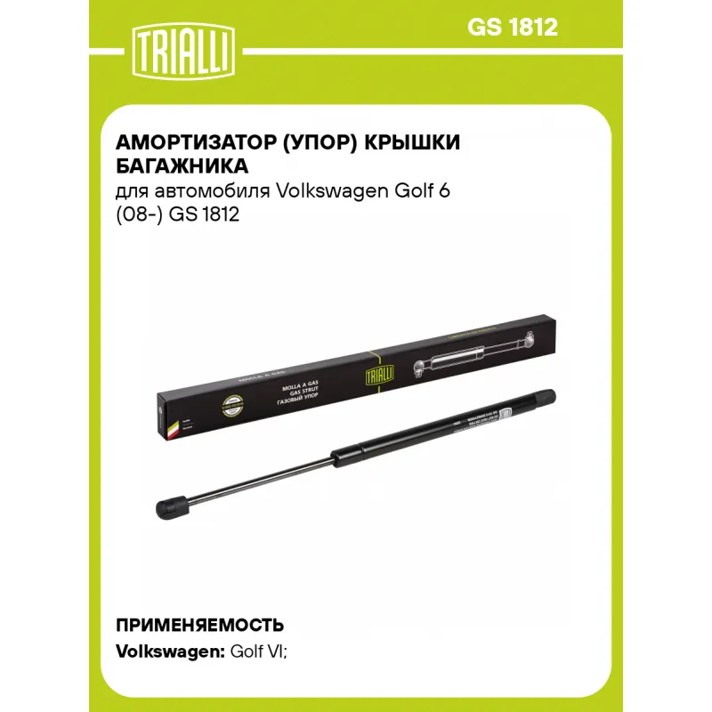 Амортизатор (упор) крышки багажника для автомобиля Volkswagen Golf 6 (08-) Характеристики: Артикул: GS 1812 OEM номера: 5K6827550B, 5K6827550D Товарная линейка: BLACK Количество на автомобиль: 2 Гарантийный срок: 2 года / 60 000 км Длина в свободном состоянии: 439.5 Длина в сжатом состоянии: 282.5 Ход поршня: 157 Усилие в точке P3: 550 Подходит для авто: Volkswagen Golf VI (08-), Golf VI (08-) Для проверки применяемости отправьте VIN автомобиля через вкладку "Есть вопросы о товаре?" Комплектация: Амортизатор (упор) крышки багажника - 1 шт Гарантия: от 1 года.