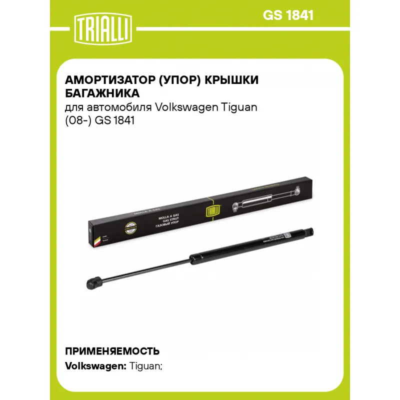 Амортизатор (упор) крышки багажника для автомобиля Volkswagen Tiguan (08-) Характеристики: Артикул: GS 1841 OEM номера: 5N0827550, 5N0827550D, 5N0827550E Товарная линейка: BLACK Количество на автомобиль: 2 Гарантийный срок: 2 года / 60 000 км Длина в свободном состоянии: 521 Длина в сжатом состоянии: 321 Ход поршня: 200 Усилие в точке P3: 475 Подходит для авто: Volkswagen Tiguan (08-) Для проверки применяемости отправьте VIN автомобиля через вкладку "Есть вопросы о товаре?" Комплектация: Амортизатор (упор) крышки багажника - 1 шт Гарантия: от 1 года.