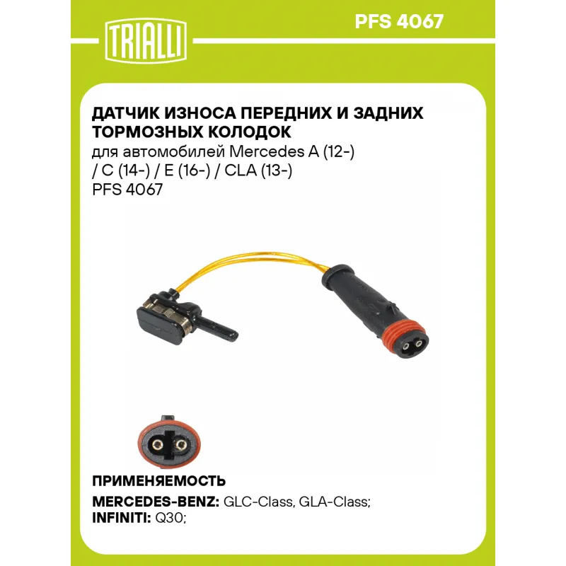 Датчик износа передних и задних тормозных колодок для автомобилей Mercedes A (12-) / C (14-) / E (16-) / CLA (13-) Характеристики: Артикул: PFS 4067 OEM номера: A1695401617, 1695401617, 410685DN0A, 479105DA9A Необходимое количество: 1 на ось Количество на автомобиль: 1 Сопутствующие товары:: PF 4067 Длина, мм: 92,5 Сторона устан... Читать полностью →