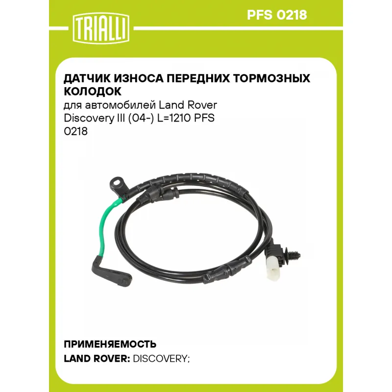 Датчик износа передних тормозных колодок для автомобилей Land Rover Discovery III (04-) L=1210 Характеристики: Артикул: PFS 0218 OEM номера: SEM000024 Длина, мм: 1210 Сторона установки: Передняя ось Необходимое количество: 1 на ось Количество на автомобиль: 1 Гарантийный срок: 1 год / 30.000 км Товарная линейка: BLACK Комплектация: Датчик износа - 1 шт Гарантия: от 1 года.