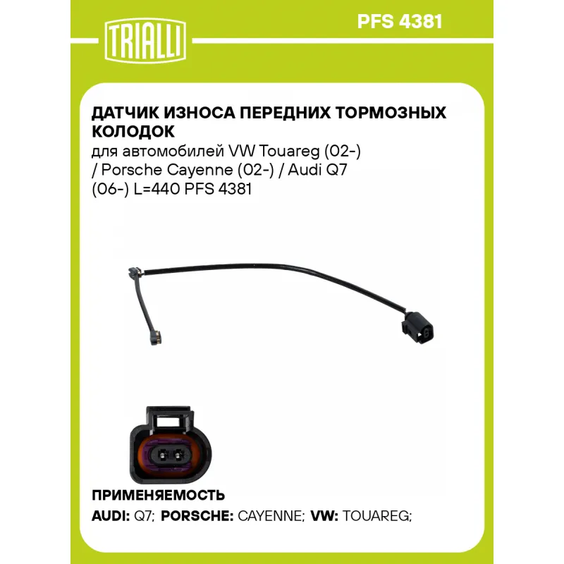 Датчик износа передних тормозных колодок для автомобилей VW Touareg (02-) / Porsche Cayenne (02-) / Audi Q7 (06-) L=440 Характеристики: Артикул: PFS 4381 OEM номера: 95561236501, 95561236502, 95561236500, 7L0907637 Необходимое количество: 2 на ось Количество на автомобиль: 2 Сопутствующие товары:: PF 4381 Длина, мм: 440 Сторона ... Читать полностью →