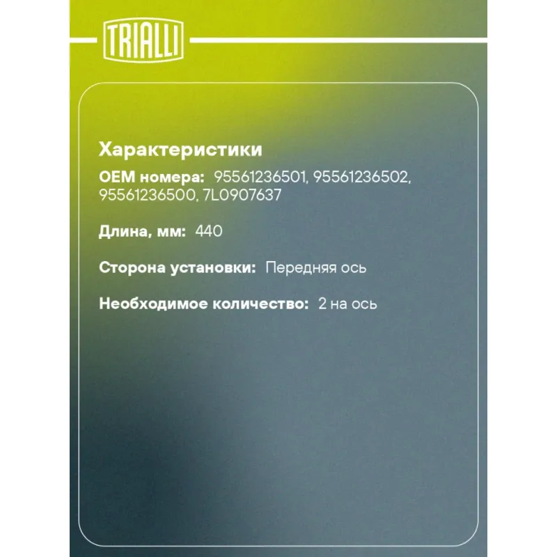 | Количество на автомобиль | 2 |