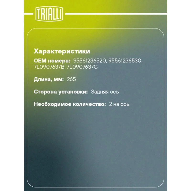 | Количество на автомобиль | 2 |