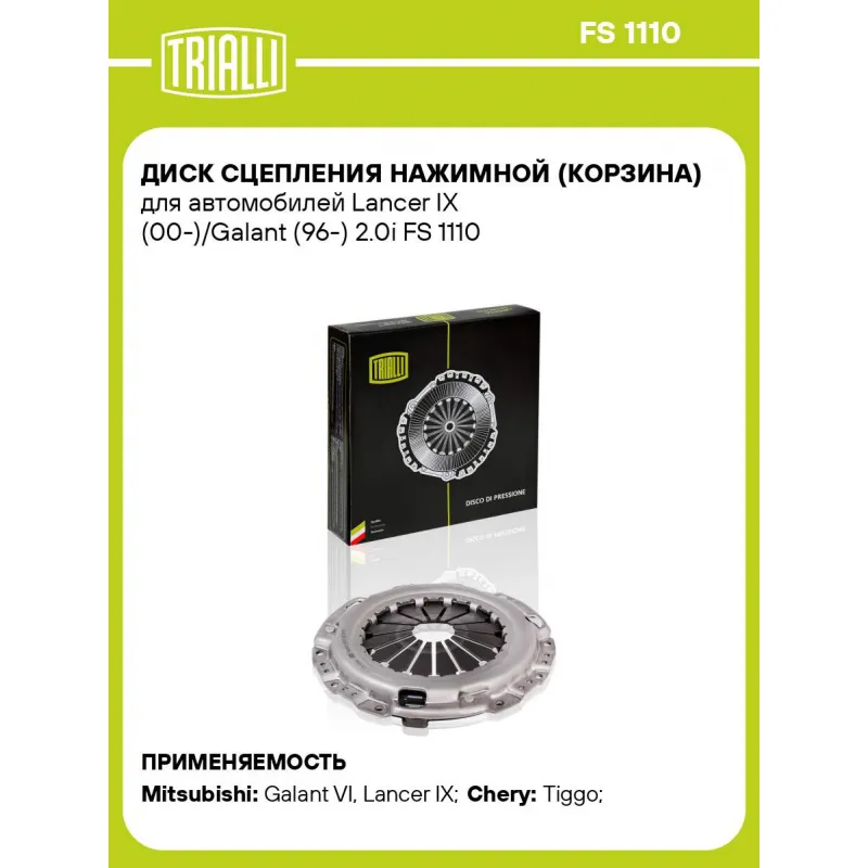Диск сцепления нажимной (корзина) для автомобилей Lancer IX (00-)/Galant (96-) 2.0i Характеристики: Артикул: FS 1110 OEM номера: MD729542, MD732645, MD734041, MD735195, MD736576, MD736579, MD737970, MD739223, MD742207, MD743983, MD746631, MD746932, MD747171, MD747748, MD747787, MD749462, MD764041, MR534354 Диаметр, мм: 227 Количество на автомобиль: 1 Сопутствующие товары:: FR 1110, FD 1110 Гарантийный срок: 2 года/60 000 км Сопутствующий товар: Комплекты сцепления: FR 1110 Сопутствующий товар: Ведомые диски сцепления: FD 1110 Товарная линейка: BLACK Подходит для авто: Mitsubishi Galant VI (96-), Lancer IX (00-) Chery Tiggo (T11) (06-) Для проверки применяемости отправьте VIN автомобиля через вкладку "Есть вопросы о товаре?" Комплектация: Диск сцепления нажимной - 1 шт Гарантия: от 1 года.