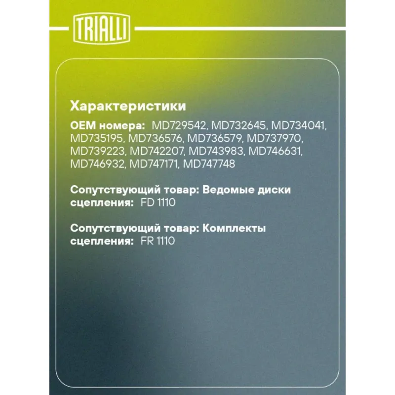 | Сопутствующий товар: Ведомые диски сцепления | FD 1110 |