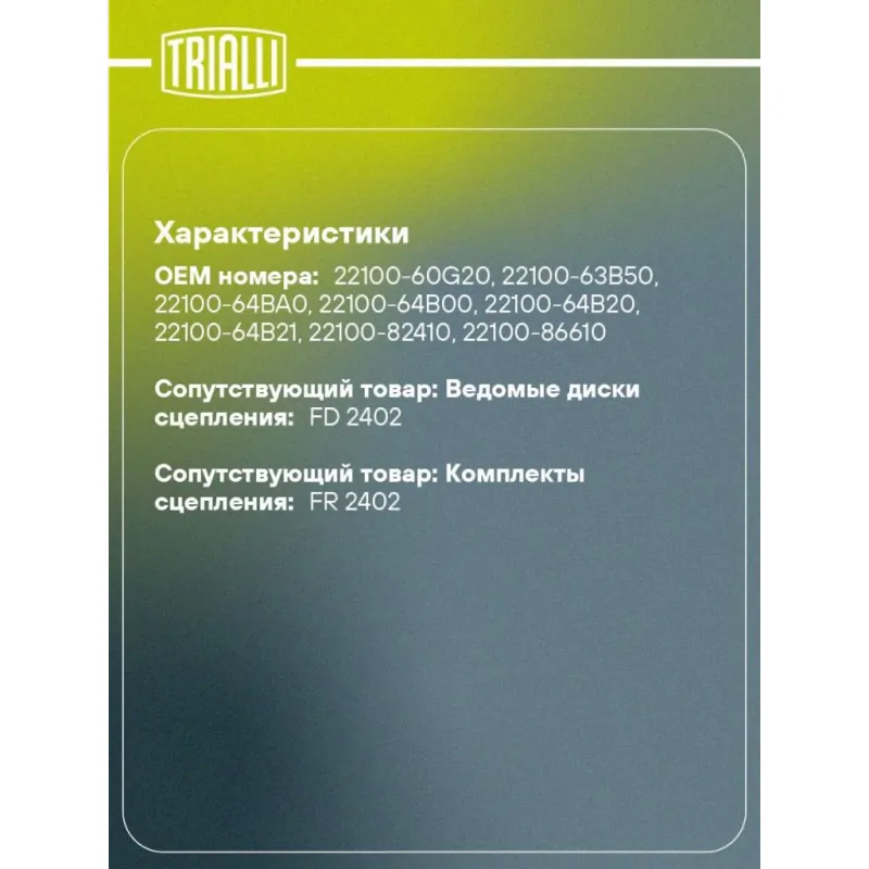 | Сопутствующий товар: Комплекты сцепления | FR 2402 |