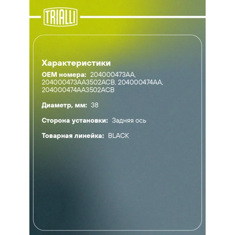 | Сторона установки | Задняя ось |