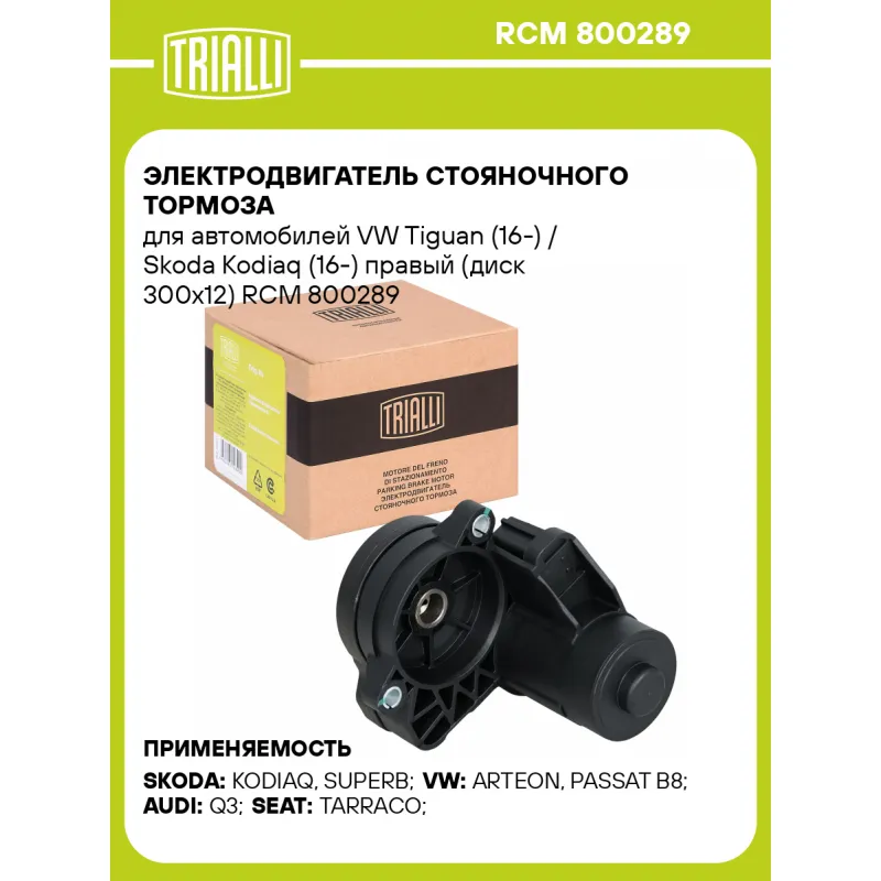 Электродвигатель стояночного тормоза для автомобилей VW Tiguan (16-) / Skoda Kodiaq (16-) правый (диск 300x12) RCM 800289 TRIALLI