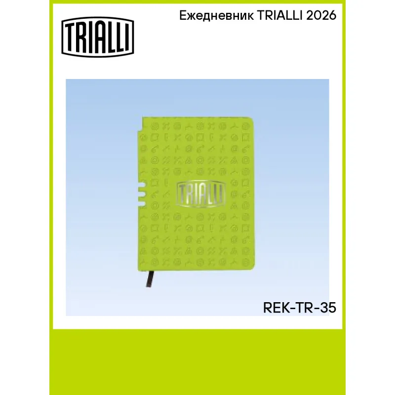 Ежедневник TRIALLI 2026 Характеристики: Артикул: REK-TR-35 Комплектация: ежедневник - 1 шт Гарантия: от 1 года.... Читать полностью →