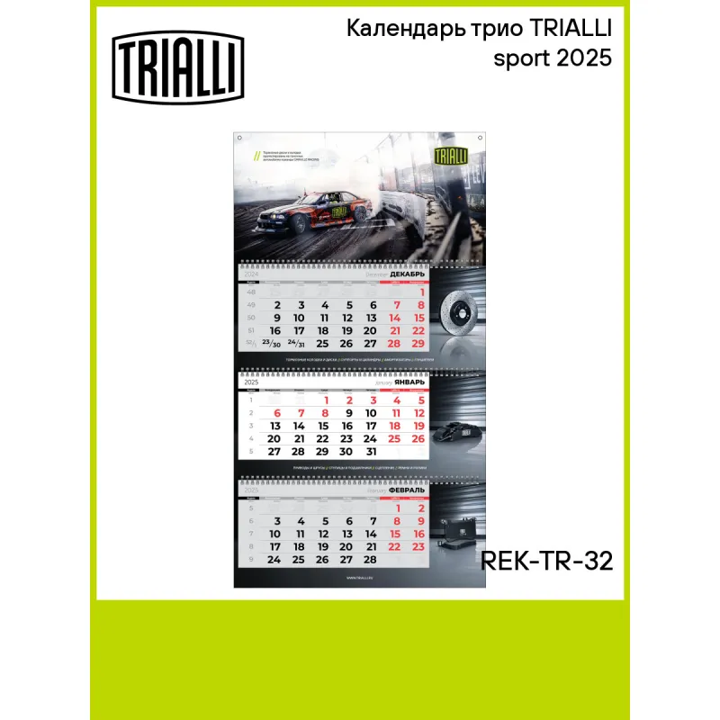 Календарь трио TRIALLI sport 2025 Характеристики: Артикул: REK-TR-32 Комплектация: Календарь - 1 шт Гарантия: от 1 года.... Читать полностью →