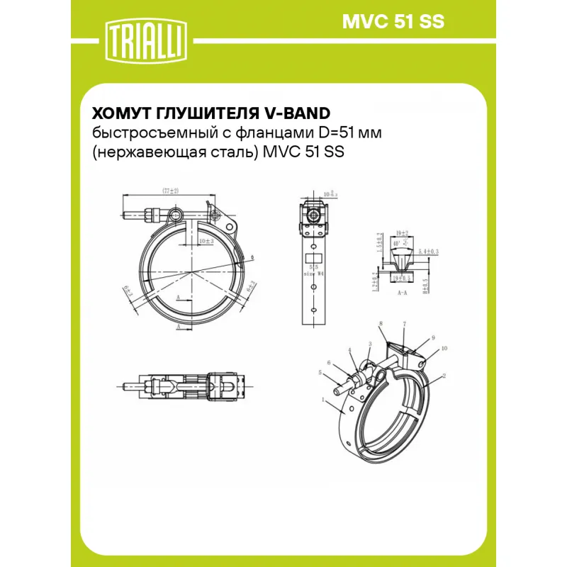 Хомут глушителя V-band быстросъемный с фланцами D=51 мм (нержавеющая сталь) Характеристики: Артикул: MVC 51 SS OEM номера: VC 51 SS Материал: Нержавеющая сталь AISI 304 Тип крепления: Универсальный хомут V-Band Размер резьбы: M6 Гарантийный срок: 2 года/60 тыс. Диапазон обжима: 51 Товарная линейка: BLACK Дополнительная информация: Этикетка изделия может отличаться от представленной на фото Комплектация: Хомут - 1 шт Гарантия: от 1 года.