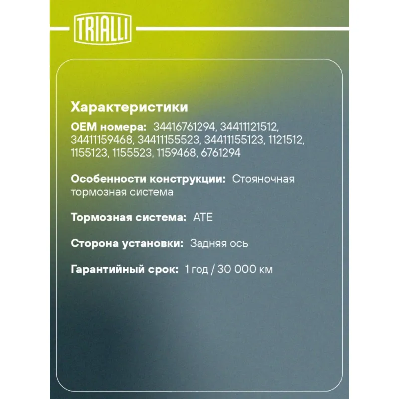 Колодки тормозные барабанные для автомобилей BMW 5 (E34) (87-) стояночного тормоза 180x25 для ATE Характеристики: Артикул: GF 2604 OEM номера: 34416761294, 34411121512, 34411159468, 34411155523, 34411155123, 1121512, 1155123, 1155523, 1159468, 6761294 Гарантийный срок: 1 год / 30 000 км Сторона установки: Задняя ось Количество на автомобиль: 1 Ширина, мм: 25 Особенности конструкции:: Стояночная тормозная система Диаметр, мм: 180 Тормозная система: ATE Товарная линейка: BLACK Подходит для авто: BMW 5 E34 (88-), 7 E38 (94-), 7 E38 (94-) Для проверки применяемости отправьте VIN автомобиля через вкладку "Есть вопросы о товаре?" Комплектация: Колодка тормозная - 4 шт Гарантия: от 1 года.
