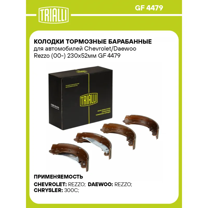 Колодки тормозные барабанные для автомобилей Chevrolet/Daewoo Rezzo (00-) 230x52мм GF 4479 TRIALLI