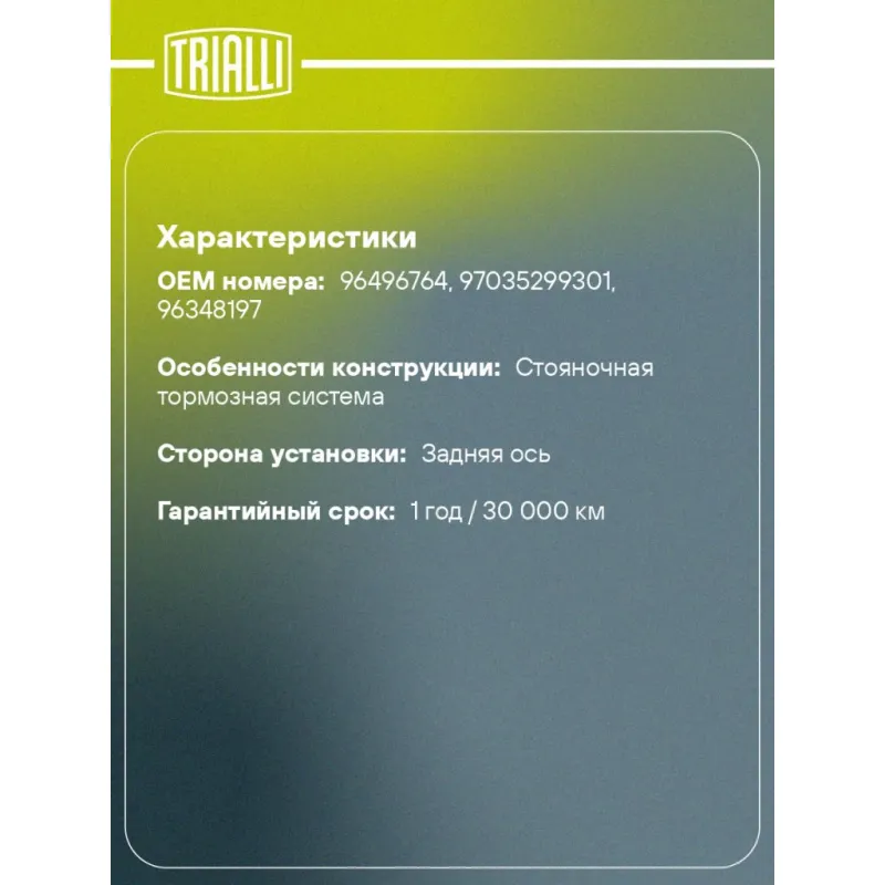 | Гарантийный срок | 1 год / 30 000 км |