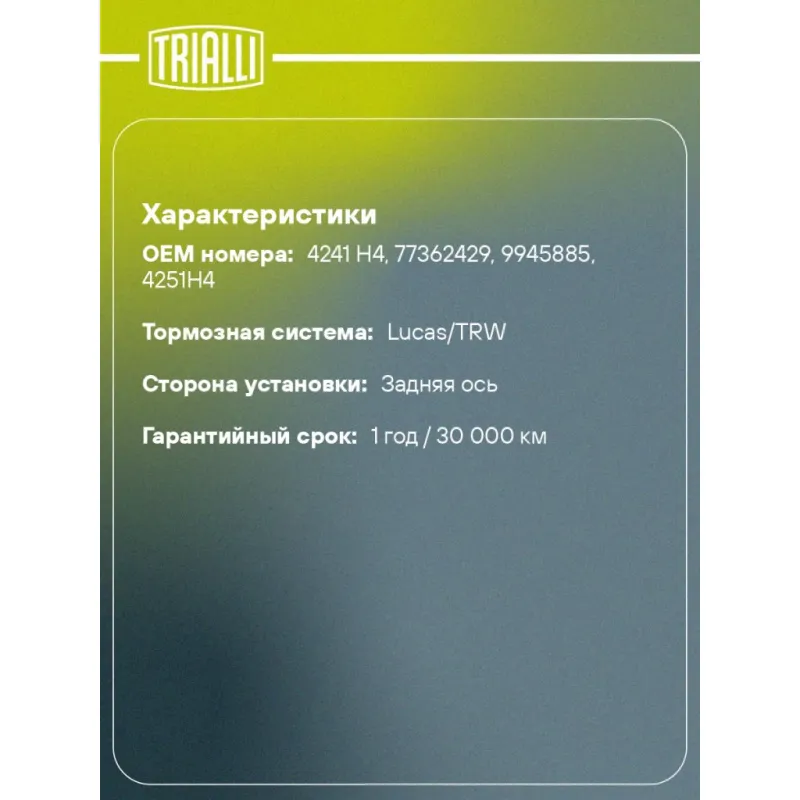 | Гарантийный срок | 1 год / 30 000 км |